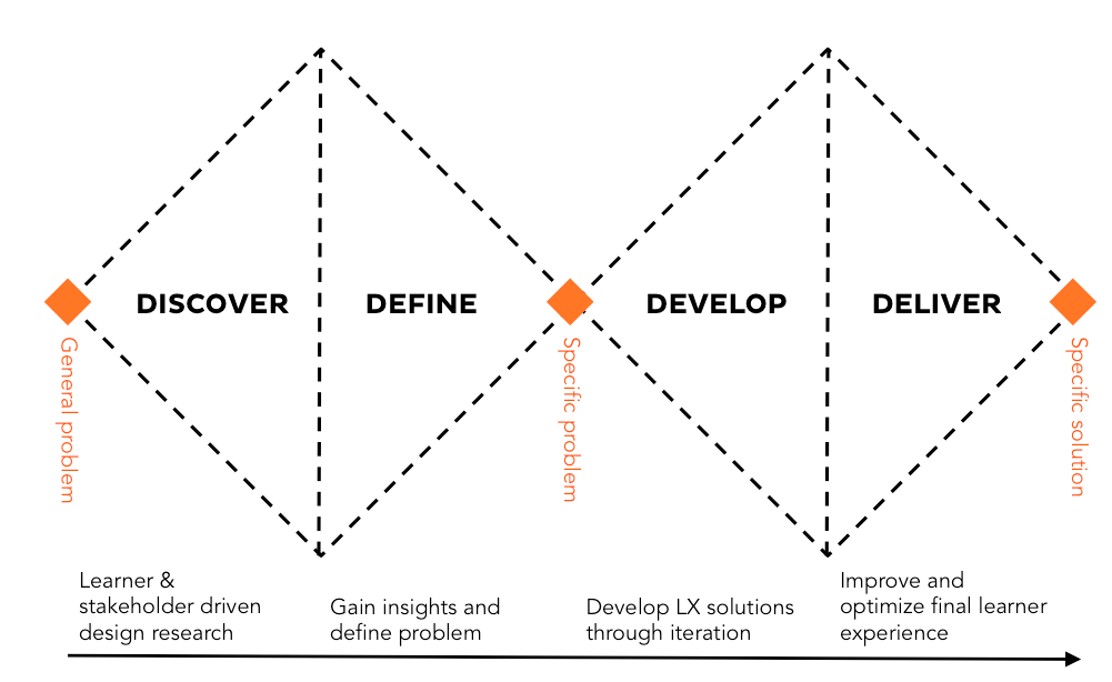 The Double Diamond design process model was used to tackle this challenge. The entire process was divided into four phases: research, synthesis, ideation and prototyping.