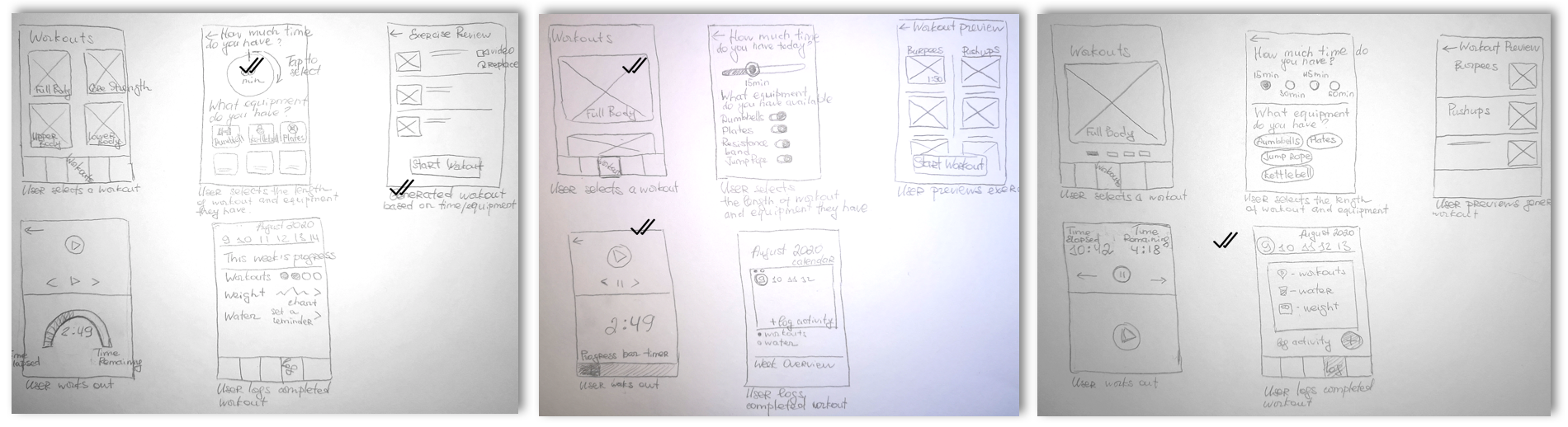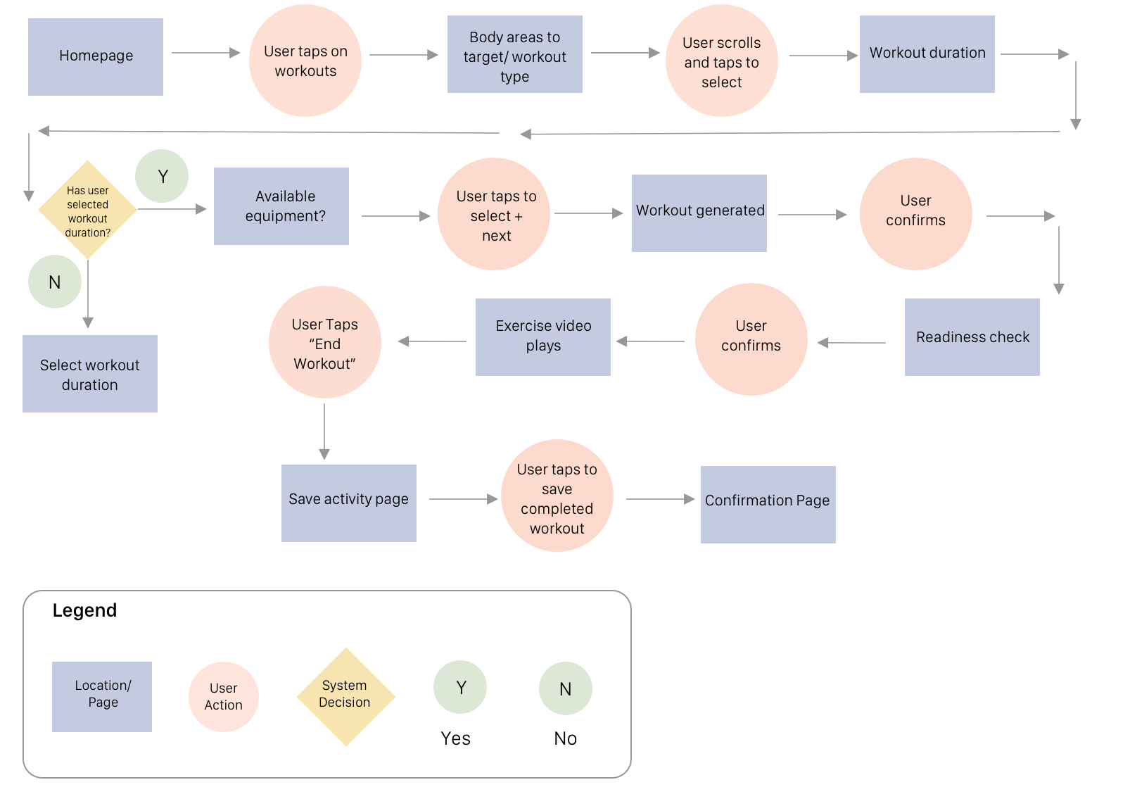 I decided to focus on the task flow of how the user completes the daily guided workout and then logs this activity to activity log.